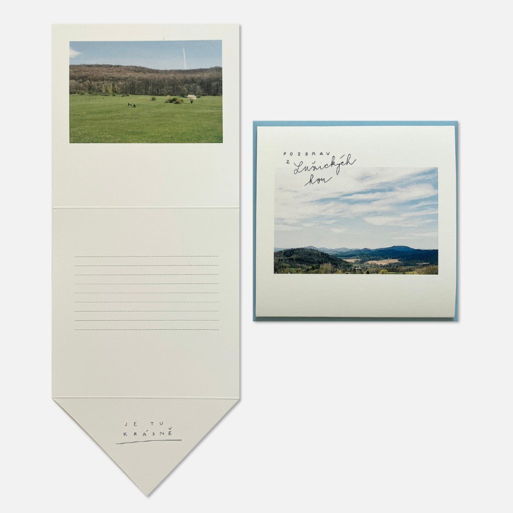 Přáníčko s neotřelým ilustrovaným motivem výhledu na Lužické hory. Je na matném papíře a součástí balení je i obálka, ve které můžete přání rovnou poslat, aby mohlo splnit účel a ukázat, kde se právě nacházíte a že na obdarovaného myslíte. Nebo si přáníčko můžete nechat pro sebe a vystavit ho jako krásnou vzpomínku, ze které se budete těšit každý den.