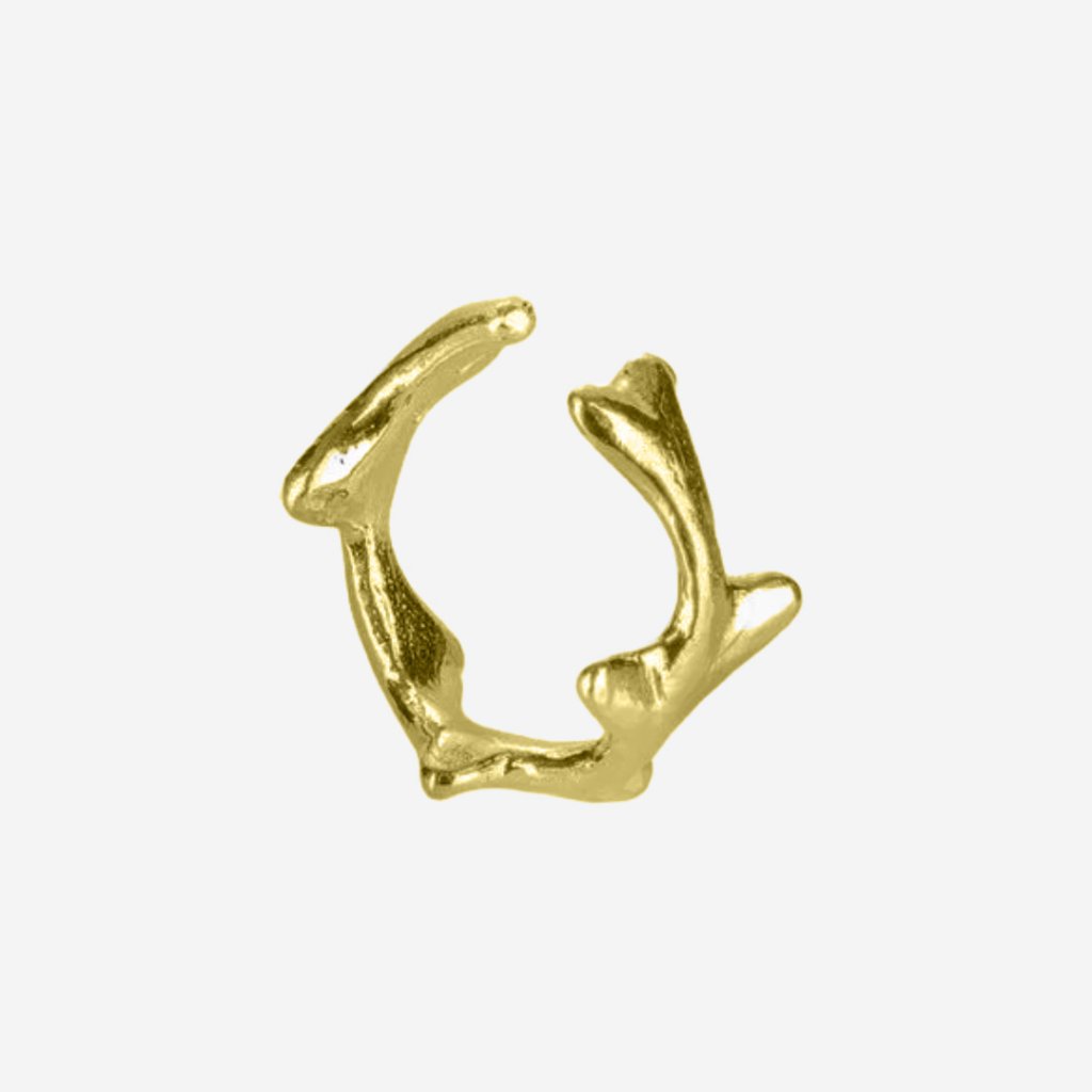 Mono náušnice ve tvaru trnové koruny od české šperkařky Nastassie Aleinikavy Kahotski je výrazný a originální šperk, který se nosí jako ear cuff, tedy kolem ucha, bez potřeby dírky. Náušnice evokuje symboliku trnové koruny a spojuje historický odkaz s moderním minimalistickým designem. Pečlivě vyrobená z kvalitního stříbra a pozlacená, dokonale kopíruje tvar ucha a poskytuje pohodlné nošení i pro celodenní outfit. Tento šperk je vhodný pro všechny, kdo hledají originální český design, který kombinuje sílu symbolu, estetiku a výraznou osobitost. Náušnice z kolekce Memento Mori.