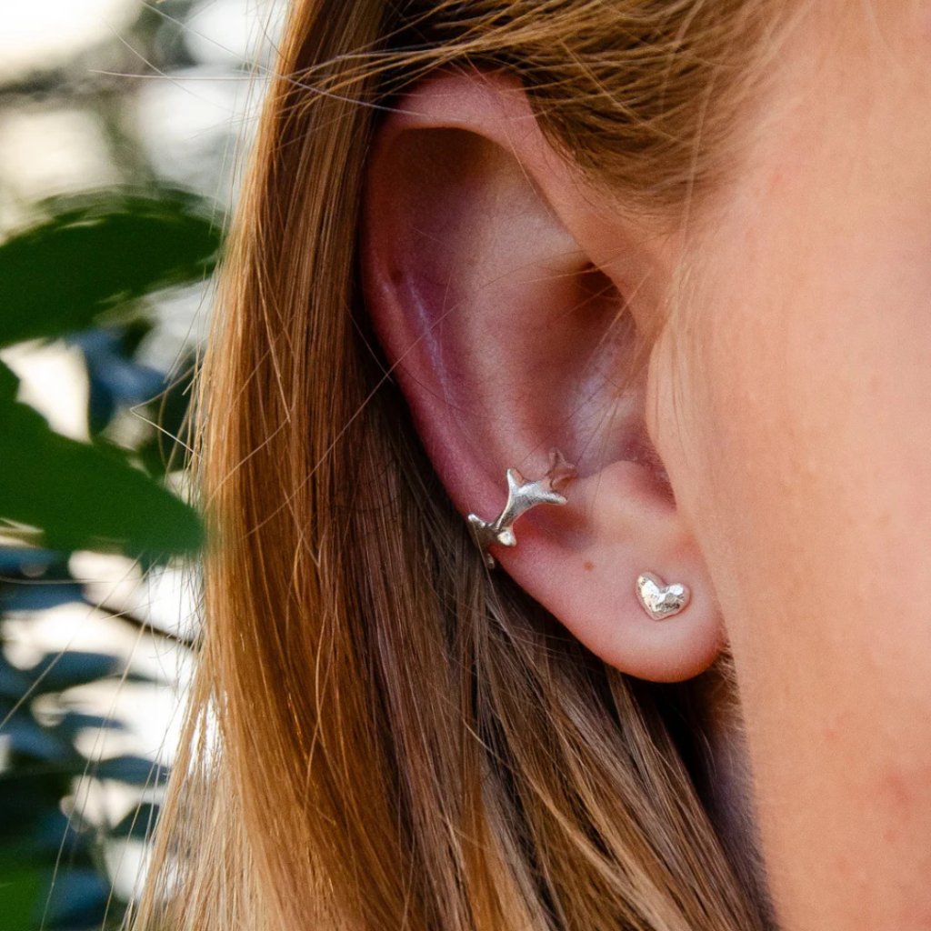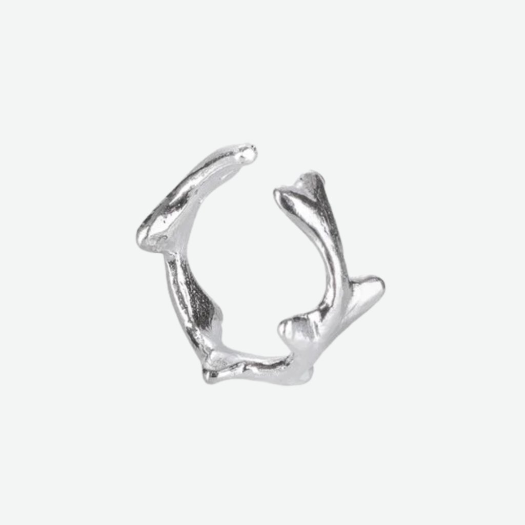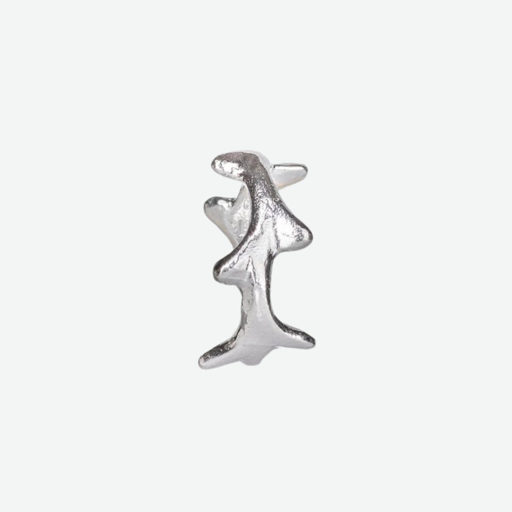 Mono náušnice ve tvaru trnové koruny od české šperkařky Nastassie Aleinikavy Kahotski je výrazný a originální šperk, který se nosí jako ear cuff, tedy kolem ucha, bez potřeby dírky. Náušnice evokuje symboliku trnové koruny a spojuje historický odkaz s moderním minimalistickým designem. Pečlivě vyrobená z kvalitního stříbra, dokonale kopíruje tvar ucha a poskytuje pohodlné nošení i pro celodenní outfit. Tento šperk je vhodný pro všechny, kdo hledají originální český design, který kombinuje sílu symbolu, estetiku a výraznou osobitost. Náušnice z kolekce Memento Mori.
