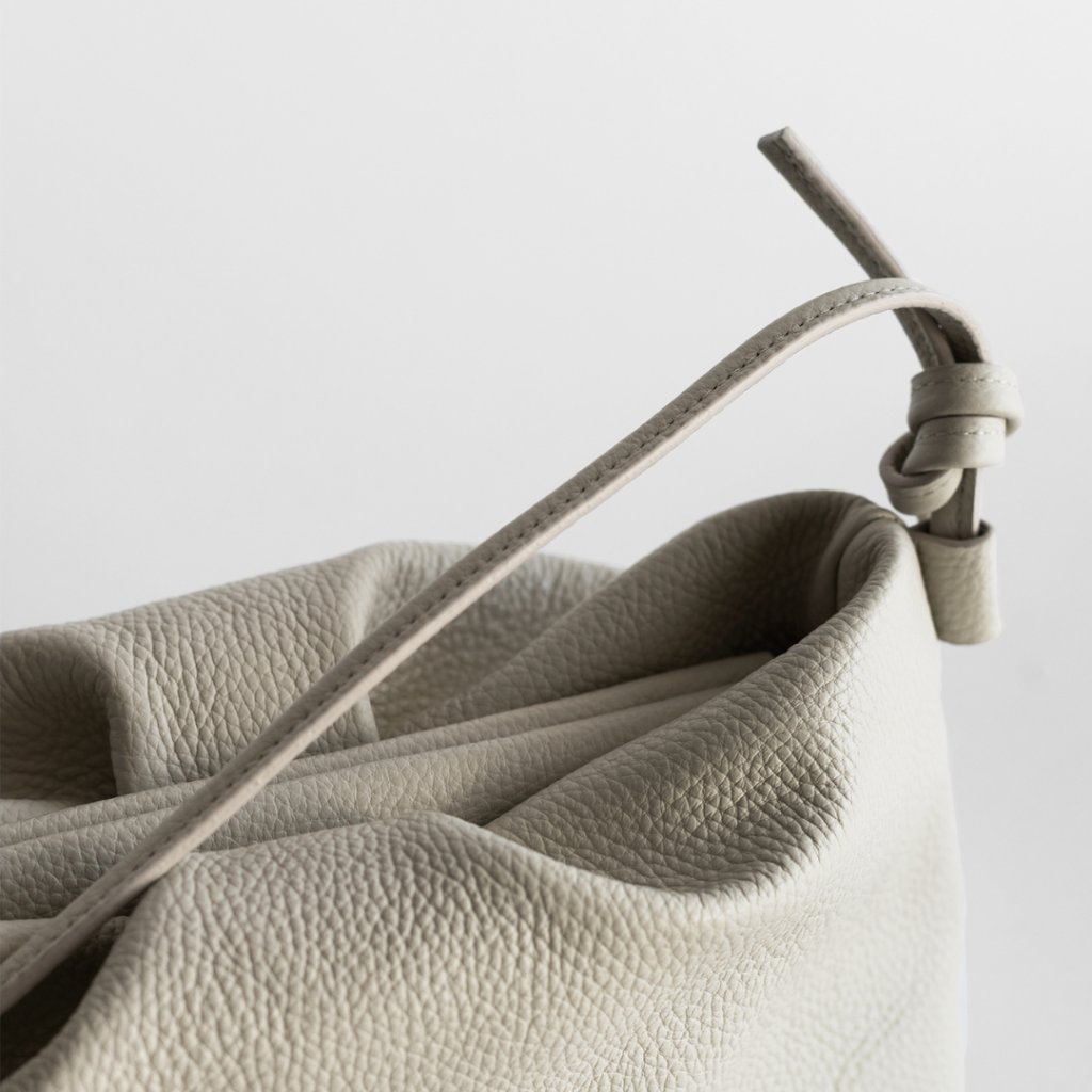 Elegantní kožené psaníčko v krémové barvě s čistým designem a důrazem na detail je ideální volbou pro každou příležitost. Měkká kůže vytváří objemný tvar doplněný o jemné uzly po stranách, které dodávají modelu jedinečný vzhled. Vnitřek je plně podšitý organickou bavlnou, což zajišťuje příjemný a šetrný dotek. Magnetické zapínání a stříbrné ražené logo dodávají psaníčku praktickou eleganci. Tento nadčasový doplněk můžete nosit po celý rok – hodí se ke všem stylům i sezónám. Skvěle doplní večerní outfit, ale využijete ho i přes den do města.