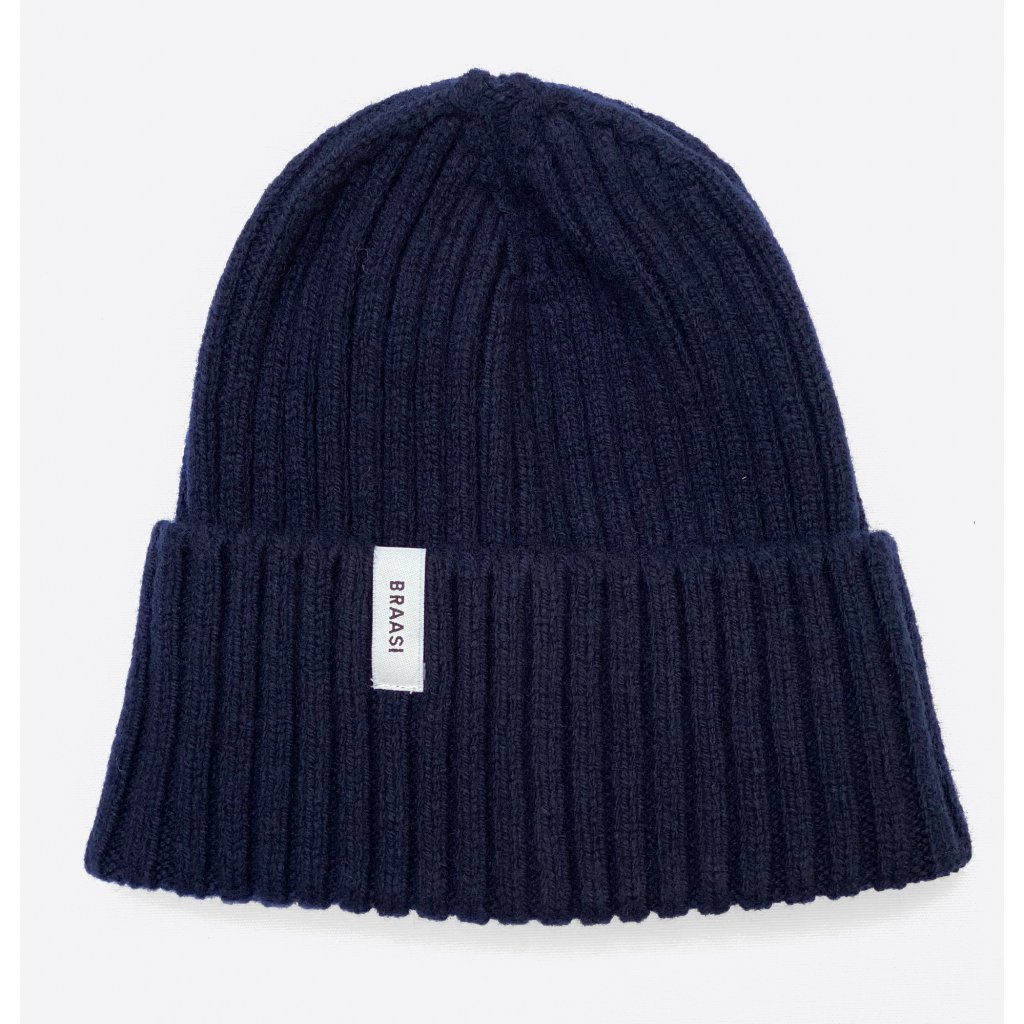 Modrá čepice z merino vlny od značky módních doplňků Braasi.