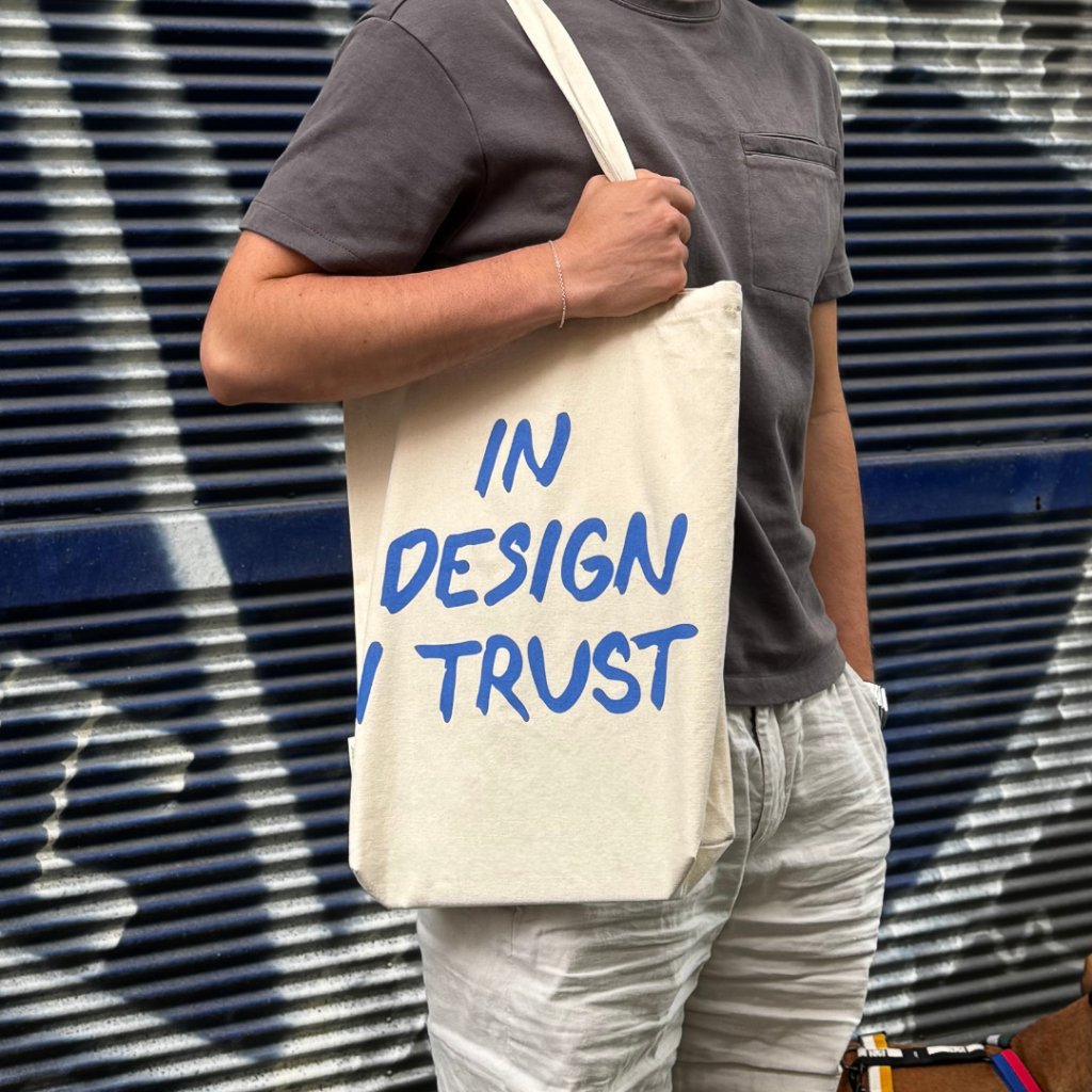 Plátěnky s nápisy CZECHDESIGN a IN DESIGN I TRUST jsou tašky s osobním rukopisem. Doslova. Obě nesou autentický nápis napsaný rukou ředitelky Czechdesignu, která má ve směřování českého designu nezanedbatelnou pozici.