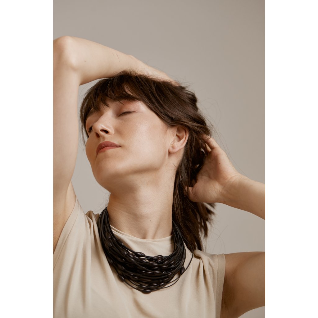 Materiál: | Kůže, barvené jasanové perle, nerezové zapínání s magnetem |