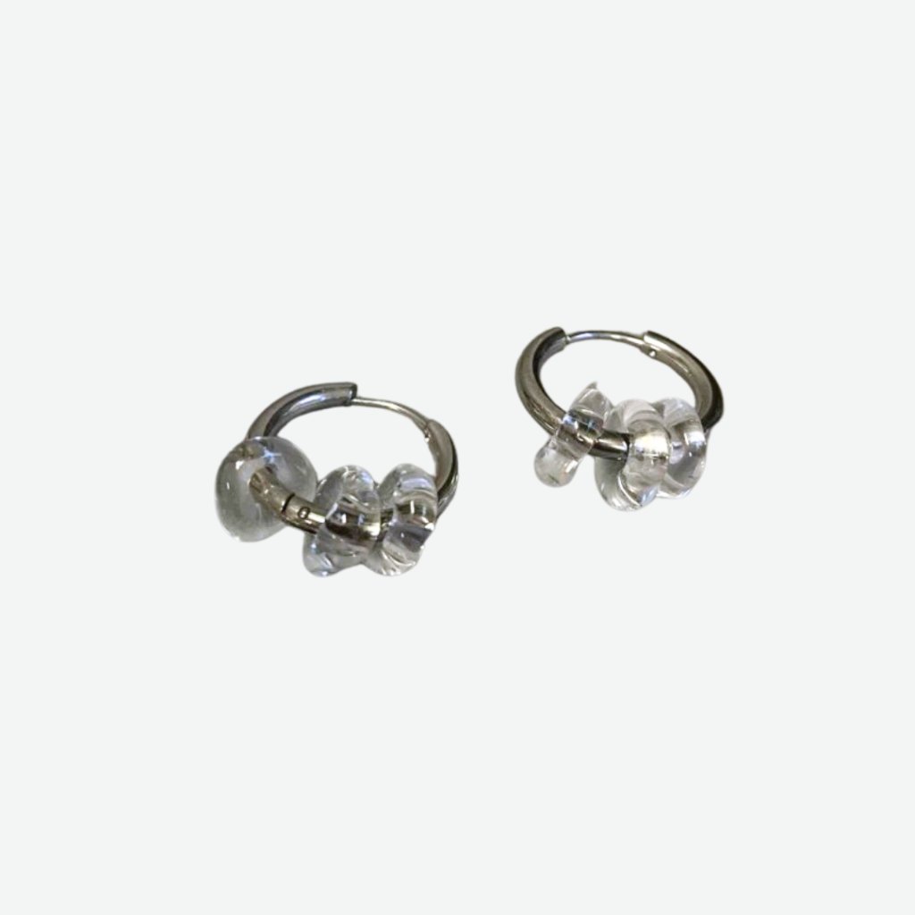 Autorský šperk z liberecké dílny Kultivar představuje dokonalou rovnováhu mezi jednoduchostí a elegancí. Jemná hra světla a stínu vzniká díky drobným skleněným kroužkům, které jsou ručně vyrobené u kahanu. Kovový komponent je z chirurgické oceli, vhodný i pro alergiky, je postříbřený. Na kovový základ jsou navlečený tři drobné kruhy ze skla, které vytváří nádherný kontrast mezi materiály, kov působí těžce a sklo lehce, dohromady tvoří harmonický celek.