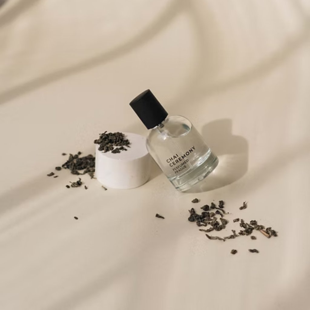 CHAI CEREMONY od Perfumed Prague je niche parfém inspirovaný asijskou čajovou kulturou. Vůně otevírá své tóny jemným čajem, které se snoubí s čerstvým kardamomem a variací koření. Výsledkem je orientální kompozice, která působí exoticky, pikantně a zároveň velmi elegantně.