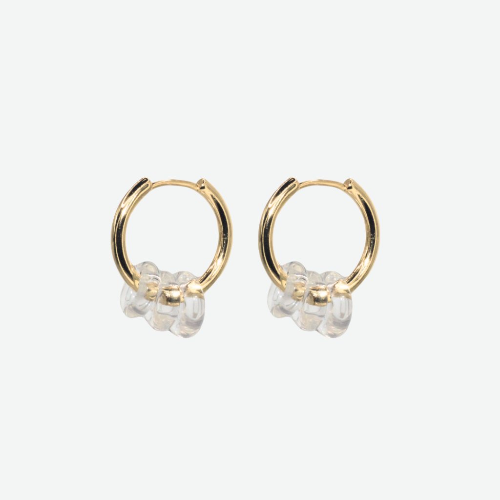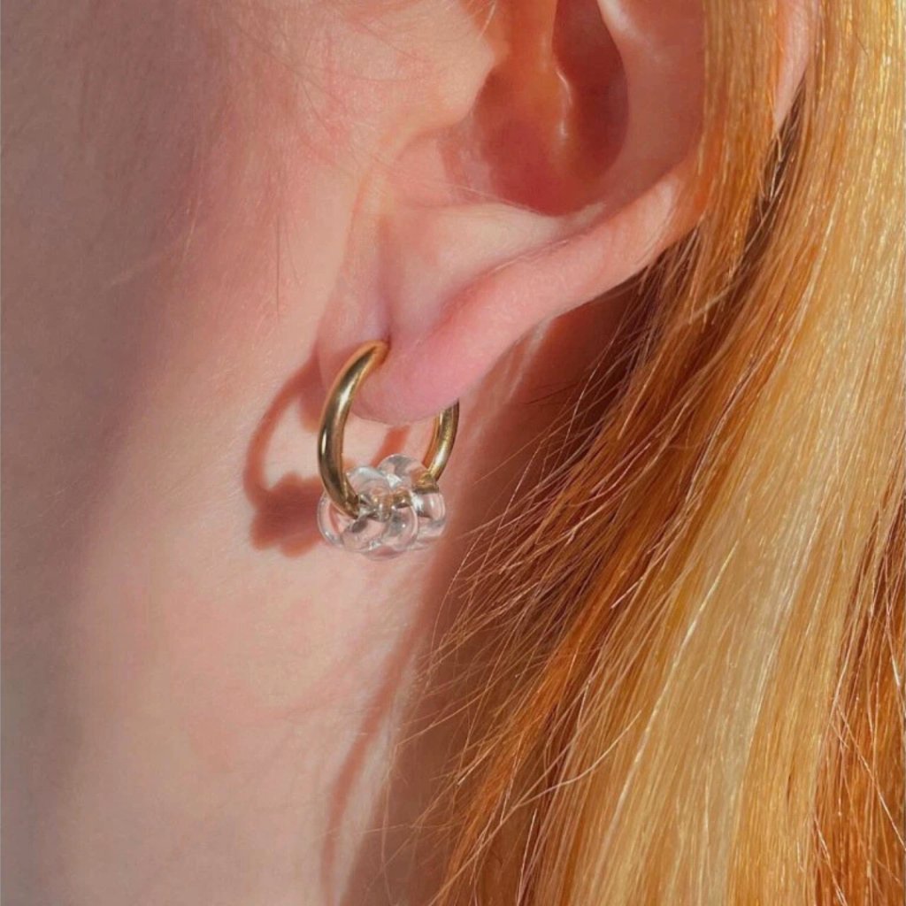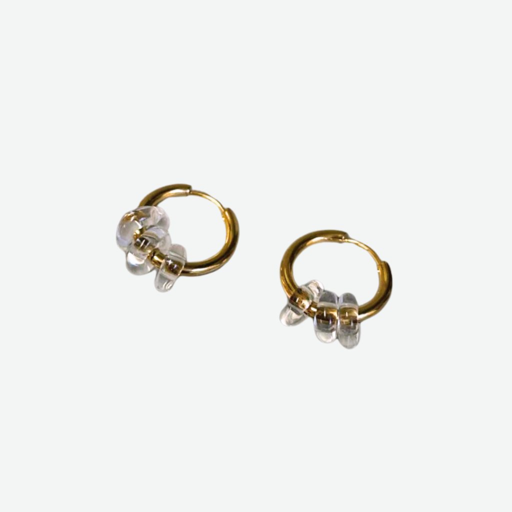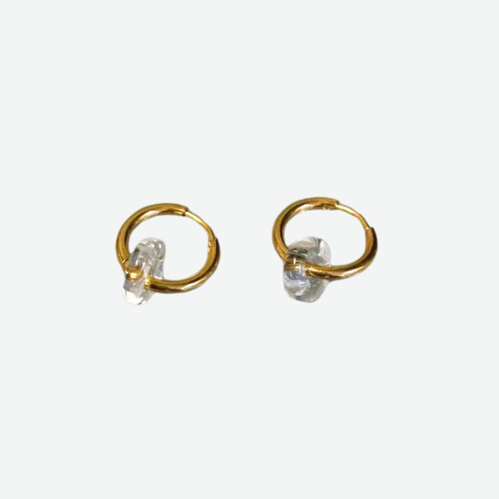 Autorský šperk z liberecké dílny Kultivar představuje dokonalou rovnováhu mezi jednoduchostí a elegancí. Jemná hra světla a stínu vzniká díky drobným skleněným kroužkům, které jsou ručně vyrobené u kahanu. Kovový komponent je z chirurgické oceli, vhodný i pro alergiky, je pozlacený. Na kovový základ jsou navlečený tři drobné kruhy ze skla, které vytváří nádherný kontrast mezi materiály, kov působí těžce a sklo lehce, dohromady tvoří harmonický celek.