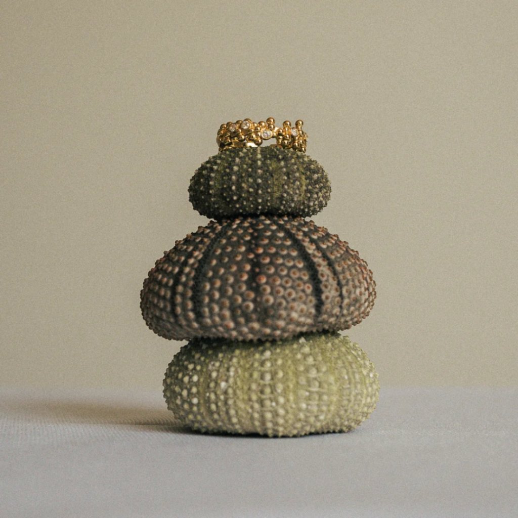 Prsten Bubble Flow od české designérky Martiny Rozenberg Smira je poctou lehkosti a jemnému rytmu přírody. Beze snahy se vine kolem prstu, připomíná bublinu stoupající vzhůru, a jeho granulovaná textura evokuje pohyb vody a nadčasové řemeslo.