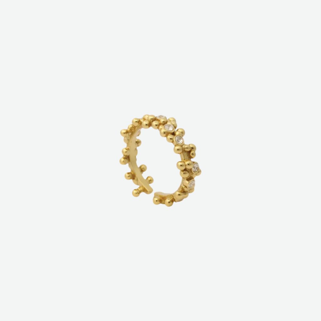 Prsten je vyroben ze stříbra Ag 925/1000 a pozlacený 14k zlatem, a doplněn zářivými zirkony, které dodávají šperku jemný třpyt. Šířka 6 mm a nastavitelná velikost zajišťují pohodlné nošení a univerzální fit pro každý den. Bubble Flow je šperk, který kombinuje poetiku přírody s elegantní funkcí a nadčasovým designem.