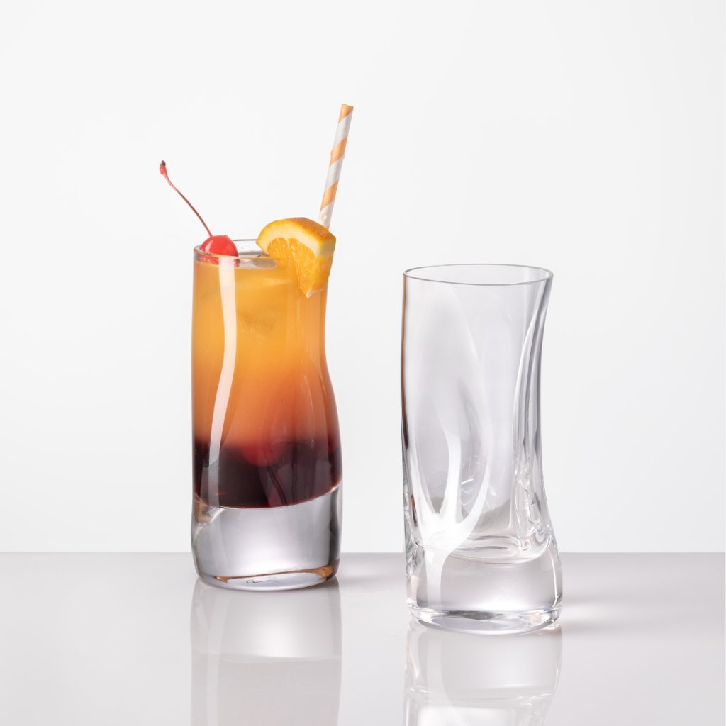Unikátní sklenice na vodu či na long drink zaujmou nejen svým objemem, ale především proměnlivým tvarem, který je výsledkem sklářského uměleckého projevu. Každý kousek je pečlivě foukaný a tvarovaný podle návrhu Lukáše Houdka, ale žádná sklenice není nikdy stejná. To dělá ze skleniček originály, které vnesou do vašeho domova punc jedinečného designu.