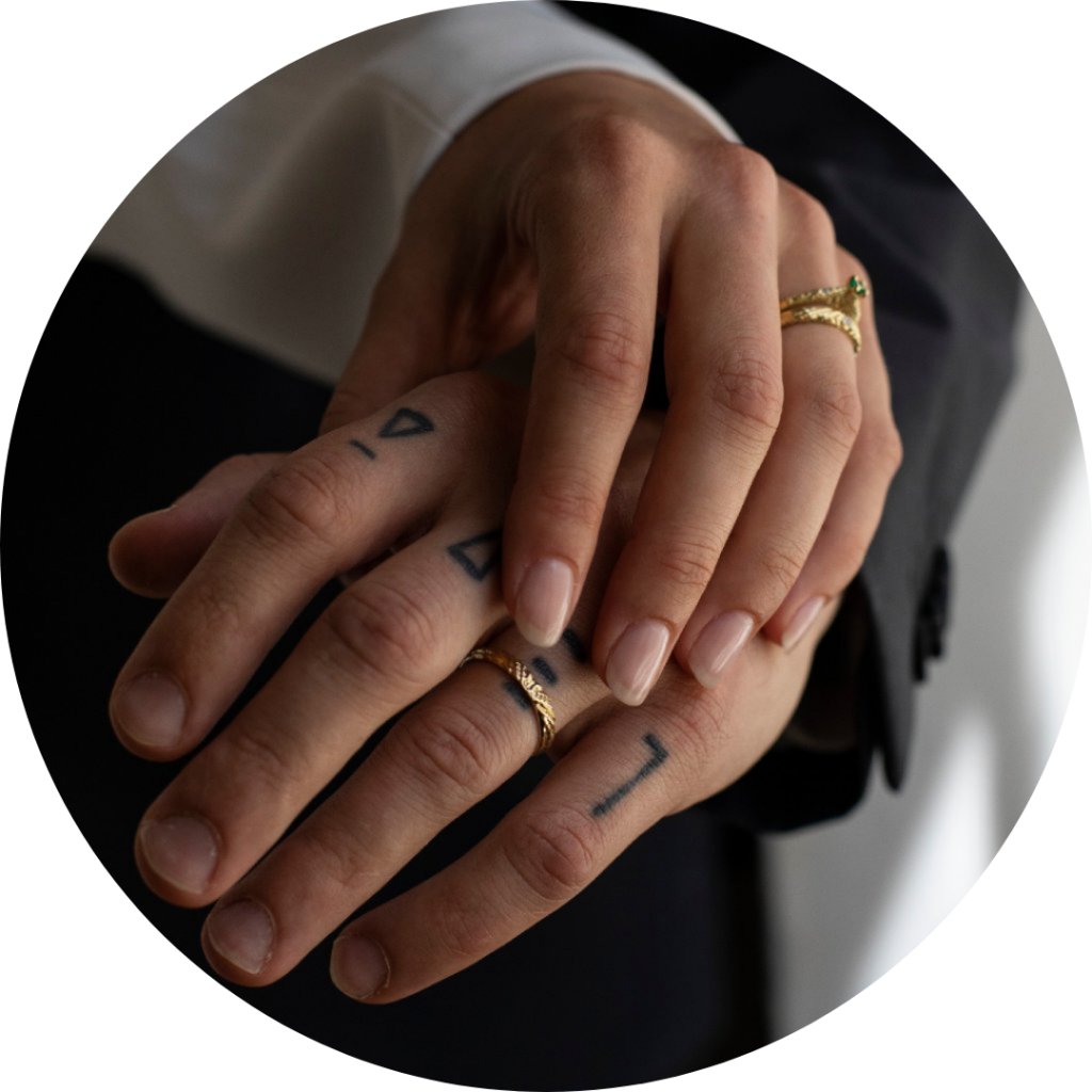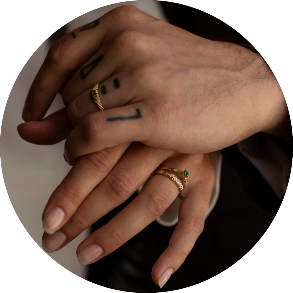 Snubní prsteny Glint se skvěle doplňují se zásnubním prstenem Passion, který je také dílem šperkařky Antonie Lecher. Kompatibilitu prstenů můžete vidět na fotografiích.