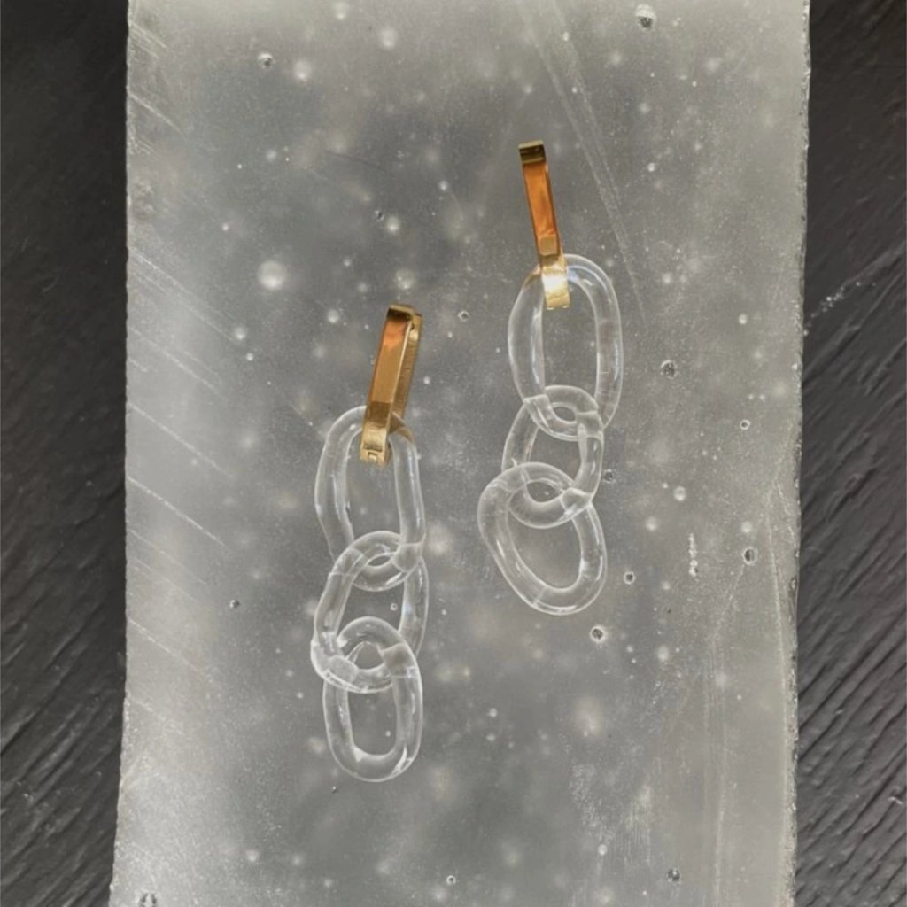 Jsou vyrobeny ručně u kahanu v liberecké dílně pod Ještědem, kde každý detail vzniká s důrazem na kvalitu a originalitu. Skleněný prvek je čirý záměrně, aby dokázal odrážet přirozenou krásu své nositelky. V kombinaci s pozlacenou chirurgickou ocelí, která je šetrná i pro alergiky, vytváří harmonii jemných i odvážných linií.