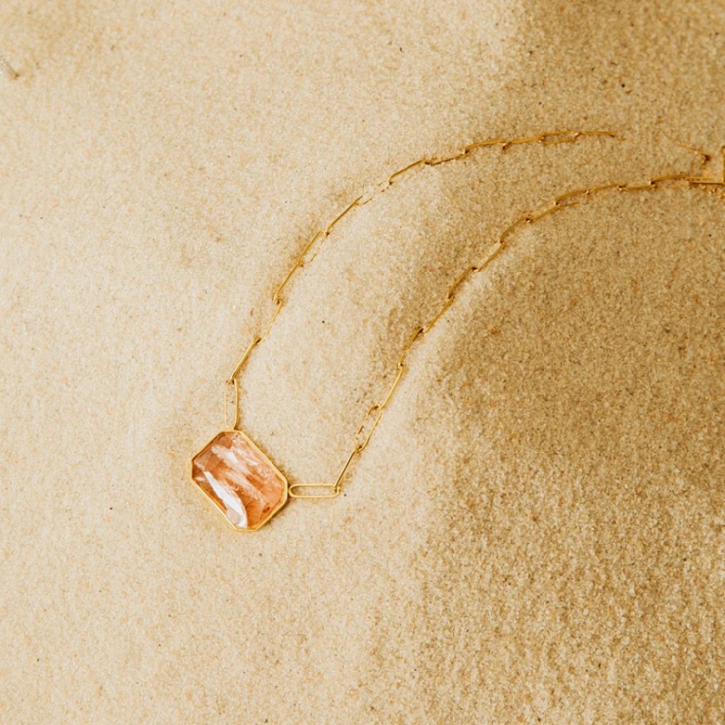 Pozlacený náhrdelník s růžovým křišťálem Ocean