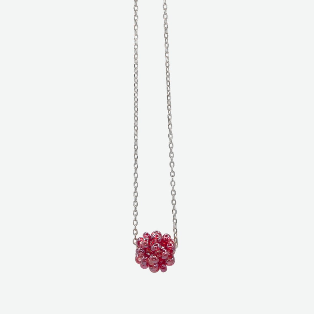 Stříbrný náhrdelník Raspberry je jemným šperkem inspirovaným severskou přírodou a silou malin, které dokážou růst i v těch nejdrsnějších podmínkách. Skleněný plod, ručně zhotovený českou designérkou Pavlínou Nilsson Grofovou, odkazuje na příběh propojení dvou světů – českého a švédského. Minimalistický design a kvalitní řemeslné zpracování dělají z tohoto náhrdelníku nadčasový talisman s osobním přesahem. Je součástí oblíbené kolekce Berries, kterou autorka vytvořila jako most mezi domovem a novým životem na severu. Raspberry není jen ozdobou, ale symbolem odolnosti, něhy a sladkosti skryté pod drsným povrchem.