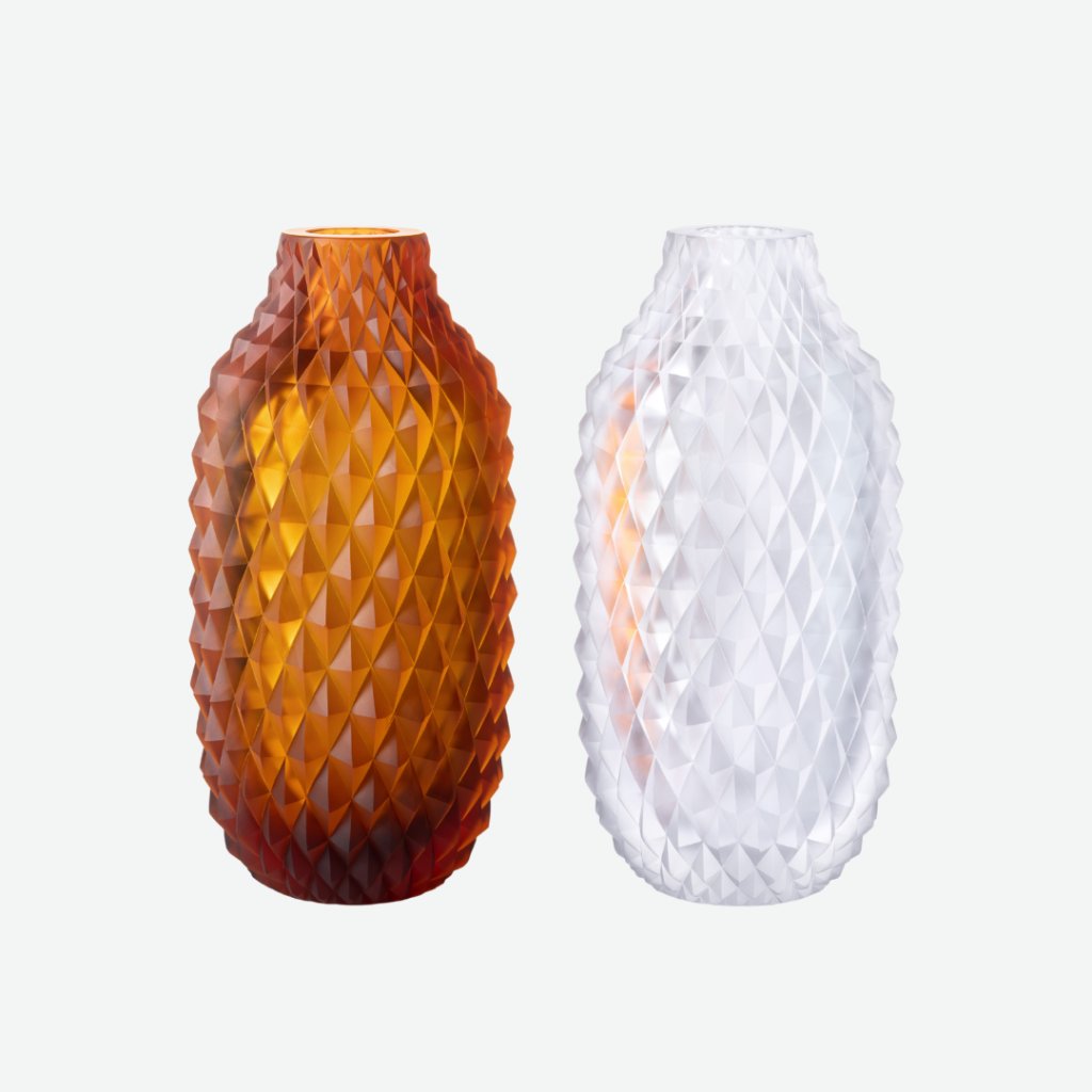 Ikonická módní návrhářka Coco Chanel byla inspirací pro tuto vázu. Kateřina Handlová do designu tohoto kousku vložila odvahu, jedinečnou povahu, inovativnost a nadčasovost Coco. Nebála se výrazného broušení s velkými geometrickými tvary, které má evokovat ikonické prošívání na Chanel kabelce. Tento brus dělá z vázy velmi neobyčejný doplněk, který ale bude náladu místnosti utvářet a vdechovat jí nevídanou atmosféru. Váza je u nás dostupná ve dvou barevných variantách - clear a amber. COCO Amber symbolizuje nadčasovost, eleganci a módu Chanel. Jedině ona rozzáří interiér slunečními odlesky.