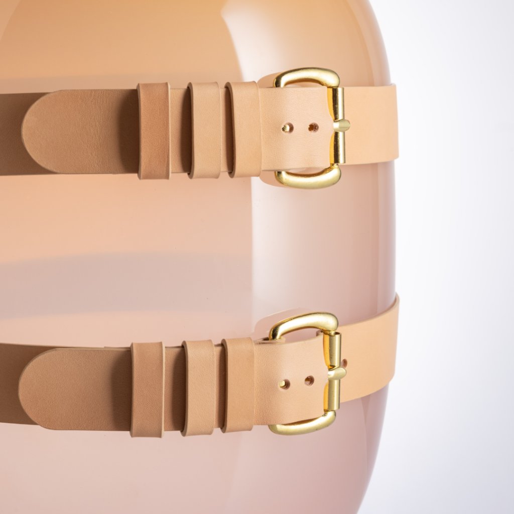 Váza v krémově barvě s koženými popruhy má připomínat dostihový sport a sílu Laty Brandisové.