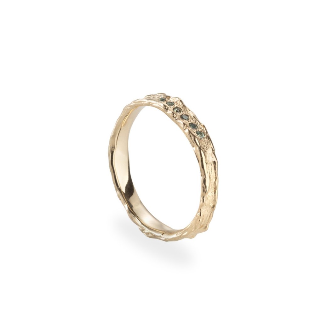 Zlatý zásnubní prsten Nitro se safírem je poctou tajemství lidského nitra – prostoru, který je hluboce osobní, proměnlivý a nedělitelný. Tento ručně vyráběný prsten zhmotňuje emoce, sny, obavy i přání, které tvoří naši vnitřní krajinu. Je osázen safíry, které symbolizují upřímnost a věrnost.