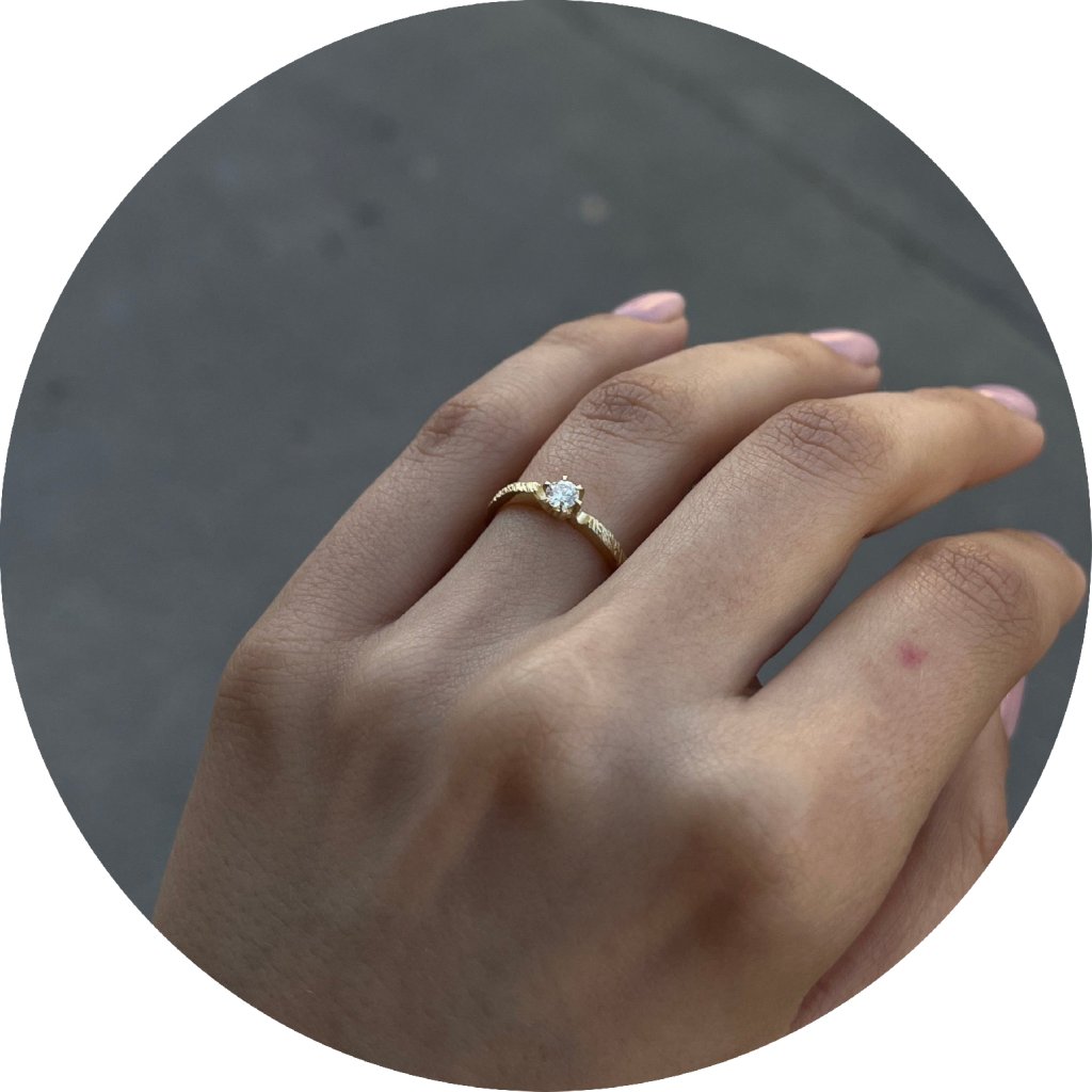 Zásnubní prsten Soča ze žlutého zlata je originálním šperkem inspirovaným přírodou. Prsten charakterizuje struktura inspirovaná řekou Soča, která je považována za jednu z nejkrásnějších. Snoubí v sobě klid a divokost, jako je tomu v lidském vztahu. Prsten obklopuje prst peřejemi bez začátku a konce jako nekonečně proudící řeka. Dominantou je diamant o průměru 2,65 mm, který šperk obohacuje o další rozměr. Výsledkem je tradiční forma zásnubního prstenu v originálním pojetí.