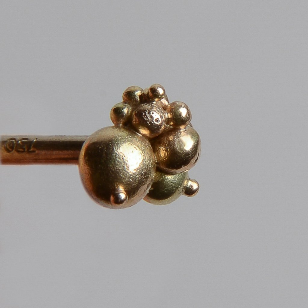 Elegantní zlaté granulované náušnice jsou výsledkem precizní ruční práce, každá granulka je vytvářena samostatně, nejde o odlitky. Díky tomu je každý pár lehce odlišný a jedinečný. Šperk je vyroben ze žlutého čtrnáctikarátového zlata Au 585/1000, které mu dodává nadčasový vzhled i vysokou odolnost. Jedinečné náušnice vznikly v dílně českého šperkaře Jana Vlasáka.