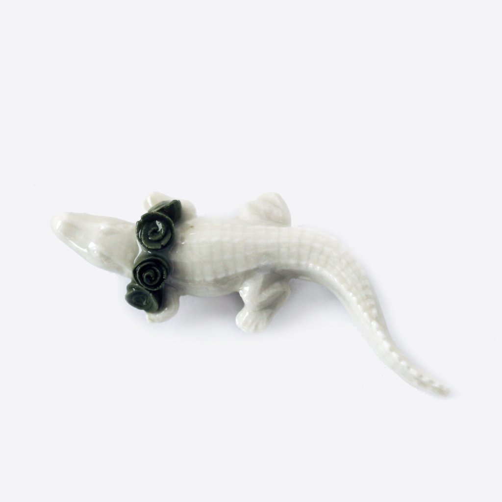 Brož - krokodýl se zelenými květy